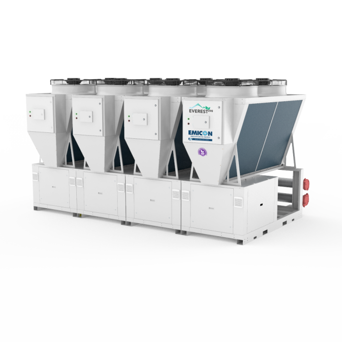 Die reversible Luft-Wasser-Scroll-Wärmepumpe Everest290 von EMICON für den Außenbereich verfügt über ein vollständig modulares Konzept, das eine extrem geringe Füllmenge an äußerst nachhaltigem R290-Kältemittel pro Kreislauf gewährleistet und so maximale Sicherheit bietet. Geeignet für alle HLK-Anwendungen und in der Lage, Warmwasser bis zu 70°C zu erzeugen. Die Scrollkompressoren der neuesten Generation garantieren hervorragende Wirkungsgrade und große Betriebsgrenzen bis zu -20°C Außentemperatur im Heizbetrieb. Heizoptimierte und kälteoptimierte Ausführungen.
